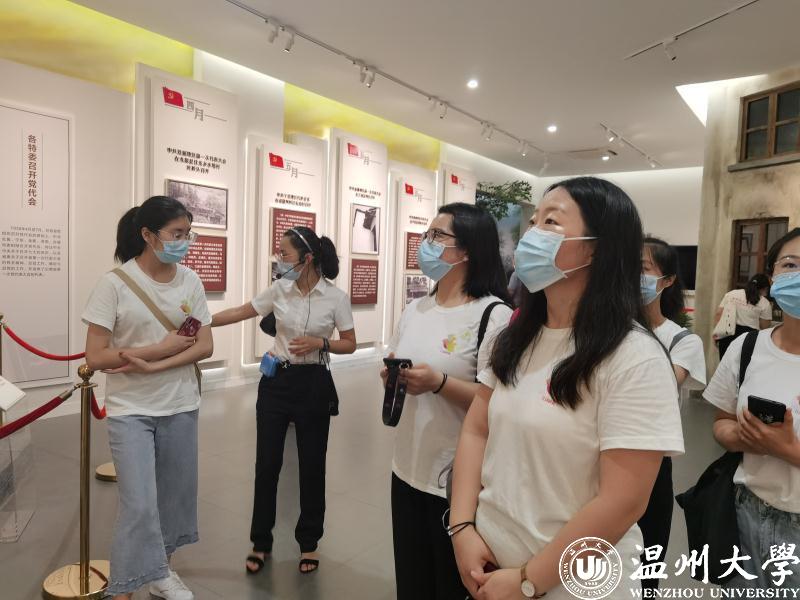 在红动研途指导老师的带领下,志愿服务队成员前往温州红色教育基地实地考察参观、品味红色情怀。在鹿城江心屿红色教育基地,队员们感受浙南人民的革命历程,亲眼目睹革命者使用过的武器、战争炮火下的秘密文件、旧时代的报刊书信,感受革命者在新中国成立路上洒下的血泪。在瑞安国旗纪念馆内,队员一起详细了解了国旗的诞生历程,一同见证了祖国崛起的历史性时刻,共同回顾中国共产党一路走来的艰辛历程以及辉煌成就,重温中国共产党波澜壮阔的历程。