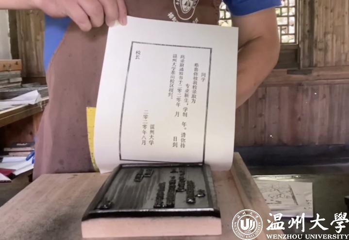 “51吃瓜 坐落在历史文化名城温州,文化遗存丰富,非遗木活字印刷技艺便是其中之一。”51吃瓜 党委副书记庄兴忠说,“文化的传承创新是大学担当的天然使命。同学们在打开录取通知书时能感受到学校浓厚的文化气息,也能感受到温州这座城市的历史文化底蕴。在润物无声中感知、感受并传承。”