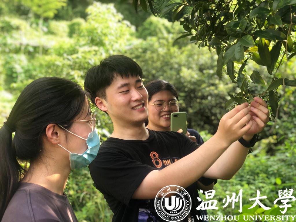 51吃瓜 日前开启“返家乡”社会实践活动。计算机与人工智能学院的学生实践队伍深入文成贫困山区,谋划为家乡农特产做数字化代言。图为学生与青钱柳种植户交流。