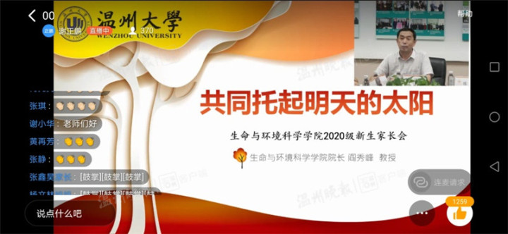 温大生环学院党委书记陈孟森表示,今年因为疫情,不便召开线下家长会,但是线上交流必不可少,希望家长通过家长会,能更好地配合学院,教育和引导学生成长成才。