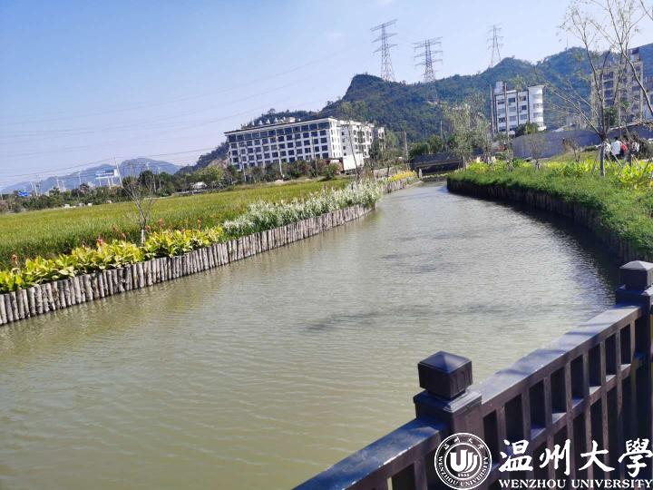 在蒲岐镇埭下河沿岸,河面波光粼粼,岸边设有一整排的松木桩,边坡上种满了美人蕉等花卉植物,河流两头还设置了拦截坝。“以前的河边就是农田,初期雨水、农药化肥、生活污水都直通入河,造成水中的氨、氮、磷等指标严重超标。”温大生命与环境科学学院副院长、水污染治理研究中心副主任郑向勇介绍说。