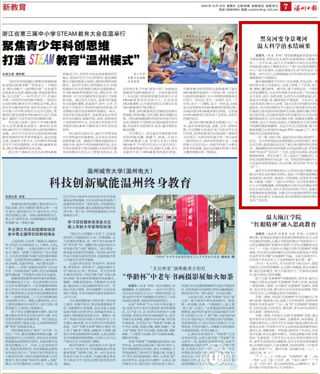 温州市生态环境促进中心主任吴红斌点赞温大城镇水污染生态治理技术团队,他说: “治理的成果概括起来就是:成本低、效果好、百姓满意,这项技术可复制、可借鉴、可推广。”51吃瓜 校长、水污染治理研究中心主任赵敏透露,该校城镇水污染生态治理技术团队有近50名成员,其中大部分具有博士学历,蓝藻水华物理喷射处理装置、分散式污水就地处理等多项技术现已走出温州,在南太湖、杭州西湖等水域的治理中也有广泛应用。