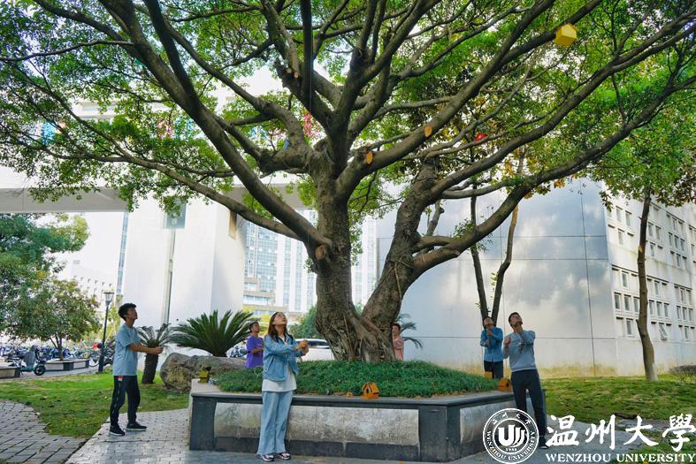 在建筑工程学院迎新晚会的开幕式上,六个鸟巢由20级各班班长升上榕树。榕树生命力旺盛,具有“独木成林”“母子世代同根生”的特点,寓意着建筑工程学院所有学生都是一家人。早在开学的第一节班会课上,大一新生们就满怀着梦想和期望写下了这一封信——《致四/五年后的自己》。这200多封信都装入了19级学长学姐们亲手制做的鸟巢里。每一个新生,都是一只雏鹰,在这四年里,他们将丰满自己的羽翼,在毕业的时候离开,去翱翔,去搏击蓝天。