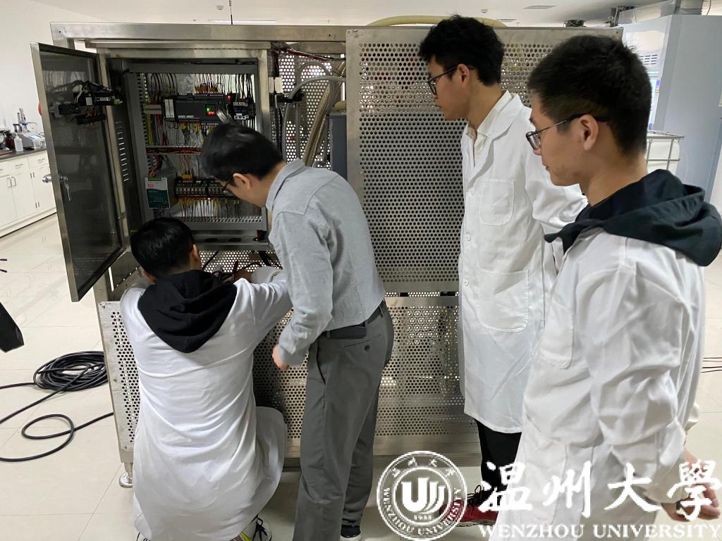 张伟明教授带领学生对电化学膜分离设备进行调试