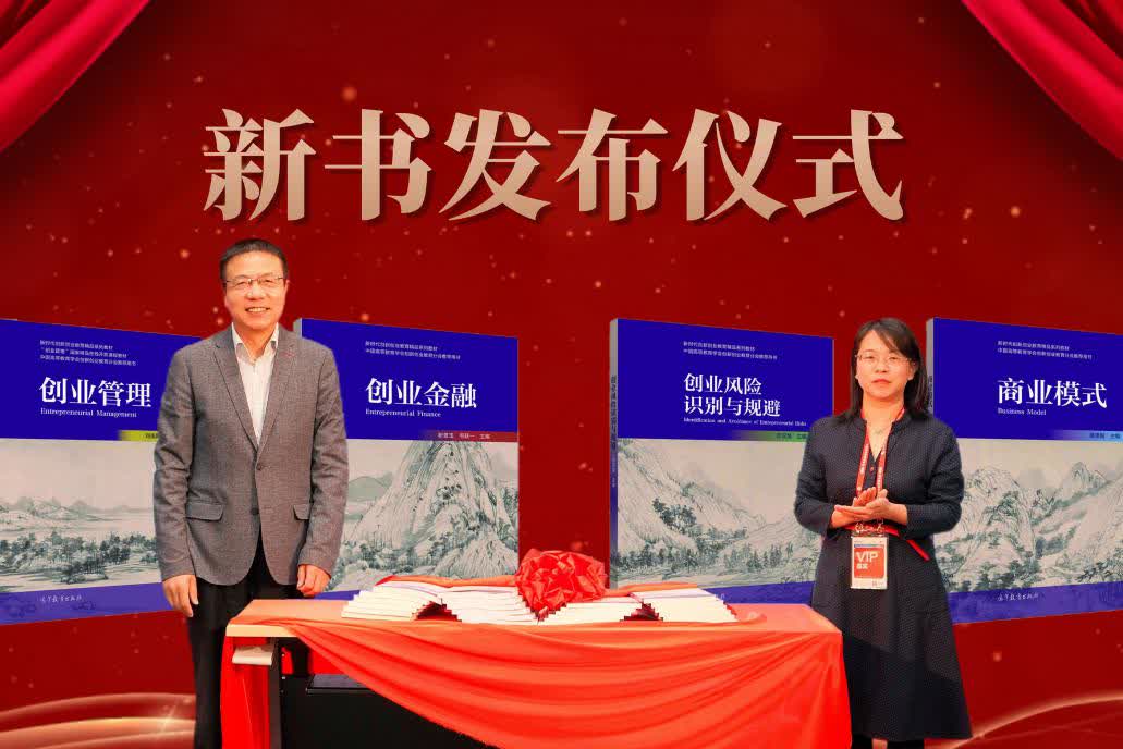 依托本次论坛,举行了“新时代创新创业系列精品教材”发布仪式,本套丛书由高等教育出版社出版,徐飞理事长担任编委会主任,丛书第一辑包含《创业管理》、《创业金融》、《商业模式》和《创业风险识别与规避》。论坛期间同时举办新未来在线教育集团捐赠仪式。