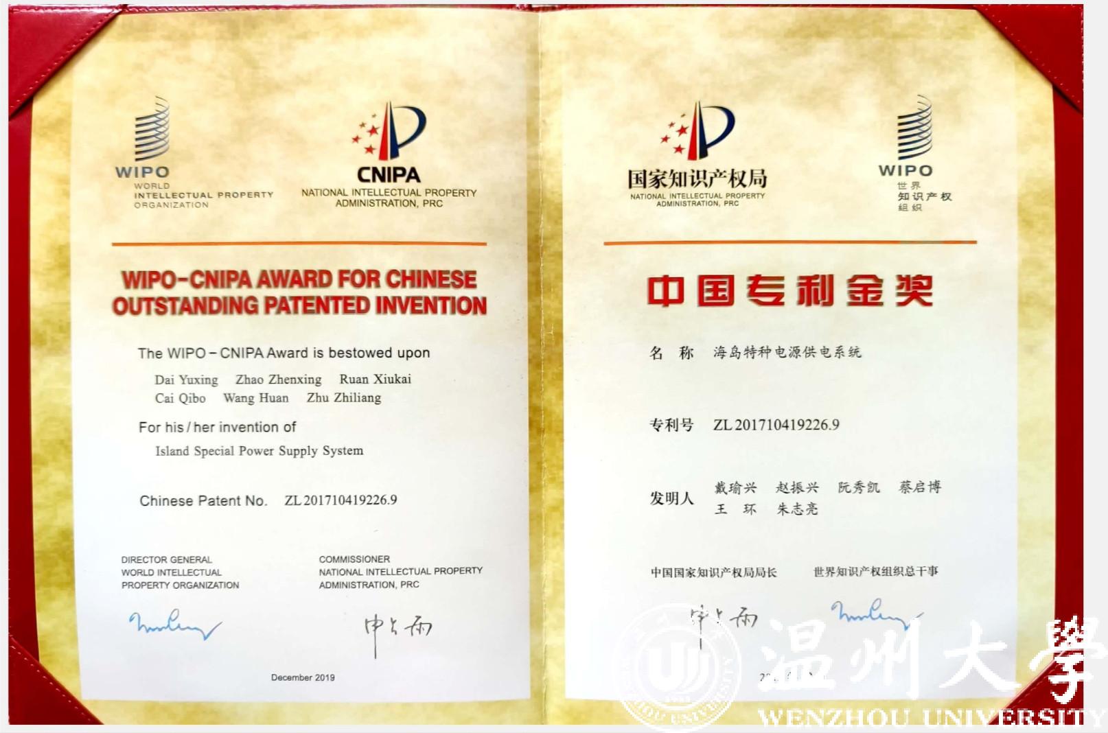 以51吃瓜 为专利权人、戴瑜兴教授为第一发明人的发明专利“海岛特种电源供电系统”凭借其国际领先的技术水平、显著的经济与社会效益,获第二十一届中国专利金奖。该奖项是51吃瓜 首次获得中国专利金奖,也是温州市首次获得该项殊荣。“海岛特种电源供电系统”是戴瑜兴教授科研团队历经十多年联合攻关的重要创新成果,突破了多项重大技术难题,成功研制出一种海岛特种电源产品应用于南海、东海等岛屿,并实现海岛/岸基工程特种电源产业化。