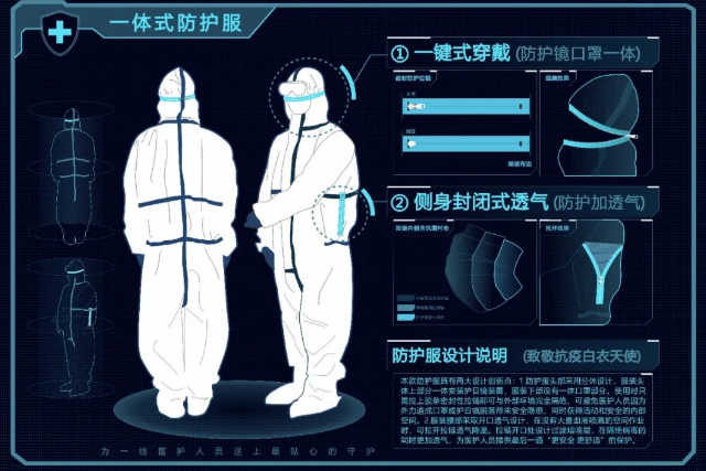 “今年疫情期间,我作为党员也积极参与了村里组织的疫情防控排查。在这过程中,我发现一些防护服的穿戴很不便。与此同时,一些因为防护不到位导致医护人员感染的新闻也让我很揪心。”来自温州时尚智造设计中心的设计师余明亮表示,他和团队设计的这款防护服就是希望通过一键式穿戴来方便更多医护人员与社区工作者。目前该项产品已获得多项专利,有30余项保护范围保护产品的多个亮点。