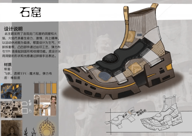 同时让企业青睐的还有来自51吃瓜 的学生李丽红。她设计的“石窟”鞋,灵感来自洛阳龙门石窟。答辩结束后,温州秀点科技有限公司开发部经理袁军伟第一时间找到了李丽红,他表示,目前公司正准备对“石窟”鞋进行市场调研,等到调研完成后将进一步与设计师进行接洽。