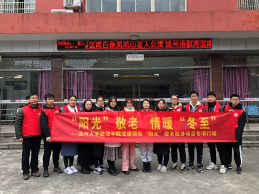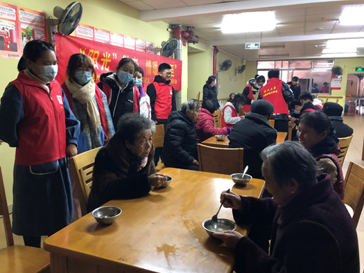 在师生共同张罗下,12月20日一早,数理学院部分教工党员和“阳光”青年志愿者共14人带着汤圆等慰问品,前往南白象老人公寓开展“阳光”敬老、情暖冬至主题爱心服务活动。在老人公寓负责人的大力支持下,数理学院师生志愿者为老人煮汤圆,陪老人聊天,与老人一起做手工,给老人居室张贴福字和窗花,还向老人赠送温馨小礼物,得到了爷爷奶奶们的一致称赞。就连老人公寓的负责人也一直夸奖。得到爷爷奶奶们的肯定,师生志愿者们心里也是暖洋洋的。