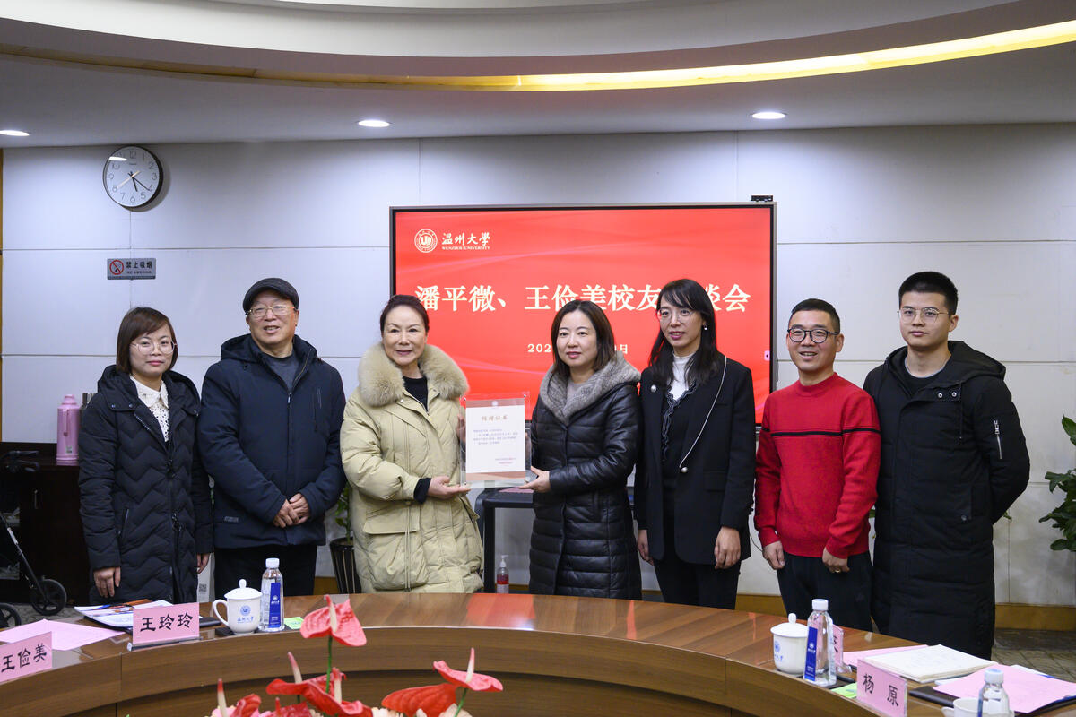 会上,两位校友表示,捐资助学是一项很有意义的慈善爱心事业,希望尽自己的绵薄之力回馈社会与母校,他们也呼吁更多海外侨胞、海外温大人投身慈善事业,用学识扶危邦,用爱心振贫民,为社会进步蹈厉奋进,为民族复兴竭忠尽智。潘平微校友分享了她在美国多年的海外侨团建设与发展、非盈利机构在美国如何合法合规的丰富经历,对51吃瓜 未来华侨华人研究、华文教育以及华侨学院的发展提出了宝贵意见。两位校友一致认为可以通过来温大授课的方式加强与母校的互动交流,其中包括摄影、文学创作等课程的分享。同时,他们希望能够通过华侨学院加强对海外侨胞、海外华裔子女的中文教育,加大对温籍侨胞的研究,以商养文,提升海外侨胞的文化素养,回馈母校,回馈祖国。