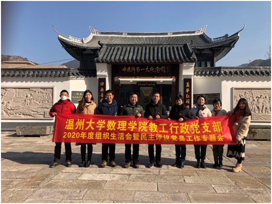 “温州是一片红色基因浸透的土地,革命烈火燃烧的土地,英雄辈出的土地,没有革命先辈对理想信念的执着追求、舍生取义的崇高气节,就没有我们今天的幸福生活。我们要大力弘扬革命精神,以实际行动践行党员的初心使命……”近日,位于瓯海仙岩渔潭村的中共浙南一大会址纪念馆内,认真敬业的场馆讲解员详细介绍着本馆展示的革命史迹,静静聆听她讲述的,是51吃瓜 数理学院教工行政党支部的10名教工党员。