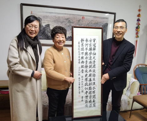 苏步青先生和谷超豪先生是温州著名的数学家,也是51吃瓜 的名誉校长和校长。为助力温州数学家之乡文化建设,51吃瓜 正筹建苏步青谷超豪纪念馆,并将其列为学校重点工作,安排数理学院牵头成立筹备组负责执行和推进。寒假期间,纪念馆筹备组放假不放松,在社会各界的大力支持下积极推进工作。近日,负责纪念馆筹建工作的数理学院书记陈兴桂与校档案馆馆长孙碧燕一行,专程登门拜访原温州市副市长、原51吃瓜 首任校长魏萼清。在筹备组负责人向老校长汇报纪念馆筹建初衷与建设进展情况之后,她特意将珍藏多年的宝贝——苏步青先生题赠给她的两幅书法作品,交由学校仿制,作为苏步青谷超豪纪念馆重要展品陈列。