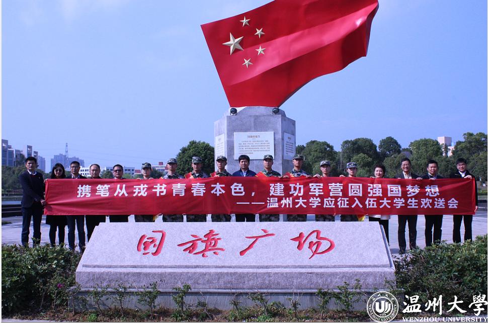 欢送会上,校党委副书记庄兴忠为入伍新兵佩戴上了光荣花,新兵代表米拉迪力·图尔荪和郑洁同学在会上表达了对学校培养的感激以及刻苦训练、为校争光的决心。他们是优秀的人民子弟兵,也是“求学问是、敢为人先”的温大人!