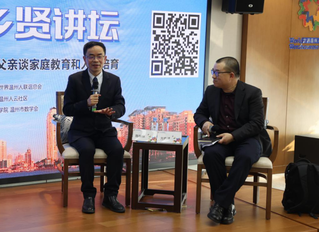 当下,对于“数学家之乡”温州来说,新生代数学家群体发展现状如何?如何将数学人才的优势转化为温州发展的一大优势?在随后举行的论坛环节,陈钱林同51吃瓜 数理学院教授、全国数学教育研究会理事、温大数学文化与数学教育研究所所长方均斌给出了答案。
