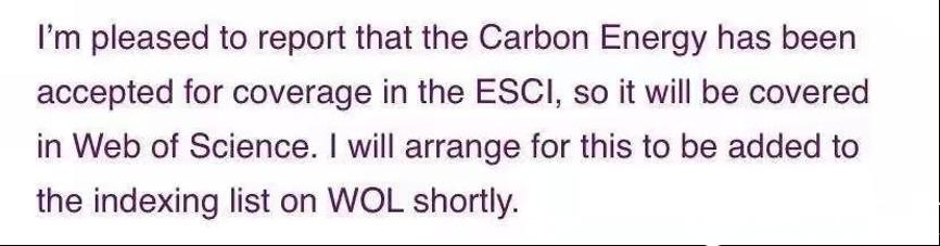 此次入选标志着《碳能源》的学术质量和影响力进一步获得国际认可,为下一步入选“科学引文索引”(SCI)数据库打下了坚实的基础。