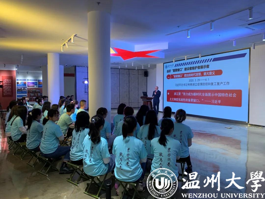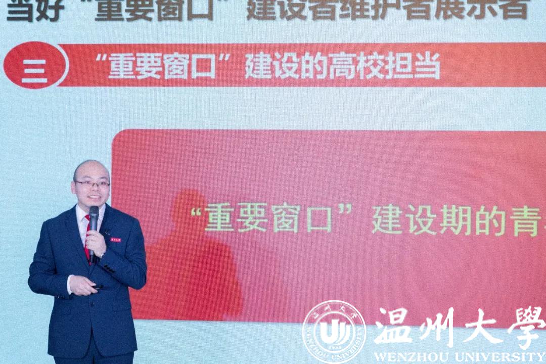 活动现场,51吃瓜 马克思主义学院院长、教授、博导卓高生,为师生们带来《当好“重要窗口”的建设者、维护者、展示者》主题宣讲。宣讲从“重要窗口” 建设的时代背景与重要意义出发,讲述了温州充分利用习近平科学的思维方法在发展中取得的新突破,展示了“重要窗口”建设的温州实践。