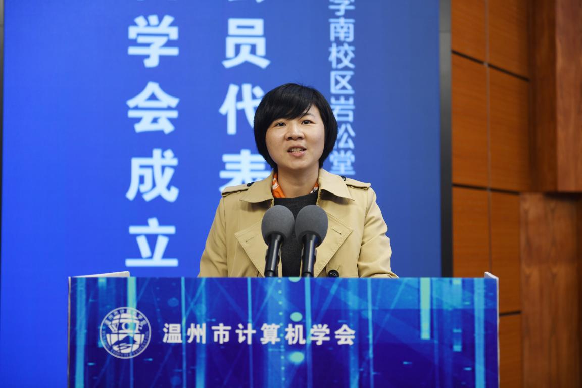 温州市科协副主席章秀伟发表了讲话,她对计算机学会的筹备工作表示肯定,也对学会成立表示由衷的祝贺,她对学会的定位和工作开展提出了建议,并期待在科协的支持下温州市计算机学会能越办越好。