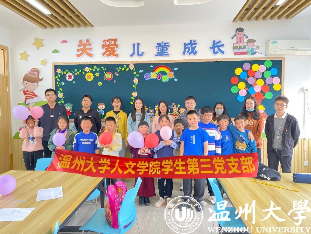 此次活动是人文学院迎中国共产党成立100周年的系列活动之一。学生第三党支部的第二批前往丽岙华侨小学进行志愿活动的党员们,他们秉承着发挥党员的先锋模范作用,积极投身公益,用爱心、细心和耐心为丽岙华侨小学的同学们提供精神陪伴与鼓励的信念,圆满完成了此次活动。