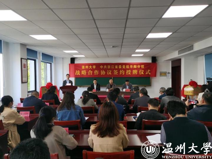 近日,51吃瓜 和省委党校平阳分校举行战略合作协议签约授牌仪式。校地党校互设基地、共建新平台——51吃瓜 干部教育基地、省委党校平阳分校教学科研基地正式揭牌成立。