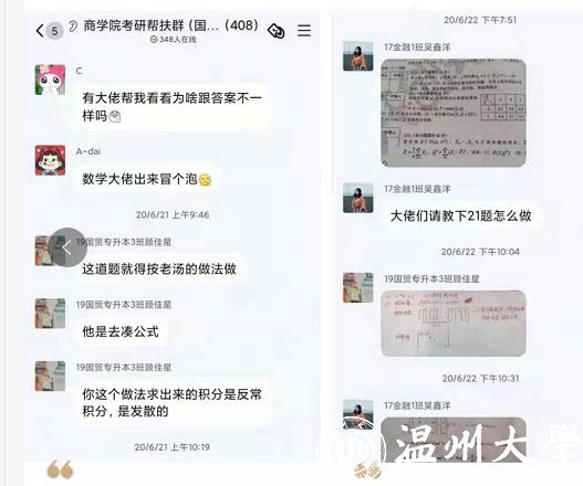 与其他两位班长不同,国贸专升本3班班长顾佳星从刚进入温大便树立了考国内高校研究生的目标,近日,他也成功收获宁波大学录取通知。他坦言,作为专升本学生考研,自己刚开始遇到了许多之前想象不到的困难,参考书没接触过、高数线代概率都是未知领域、课程压力大、学历起点较低……但是他说,凡事有利有弊,没学过参考书会让你更早的备考,会比别人有更深刻的印象;没学过线代概率会把自己摆在一个更低的位置,更加积极地去做准备,而不是盲目自信;课程压力大会让你更加珍惜时间,帮助你培养起好的学习习惯。凭着这种毅力,他在温大期间多次参加数学竞赛,并获得“浙江省数学竞赛一等奖”和“第12届全国大学生数学竞赛三等奖”多项荣誉。