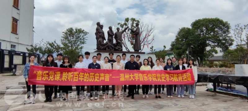 中国共产党百年华诞之际,51吃瓜 “音乐党课”在瓯海区仙岩街道浙南一大会址前正式开讲,51吃瓜 音乐学院教工第一党支部书记、副教授、硕士生导师张潇潇博士为学生党员带来题为《红梅赞——征程岁月中英勇不屈的革命之花》的首期讲演。
