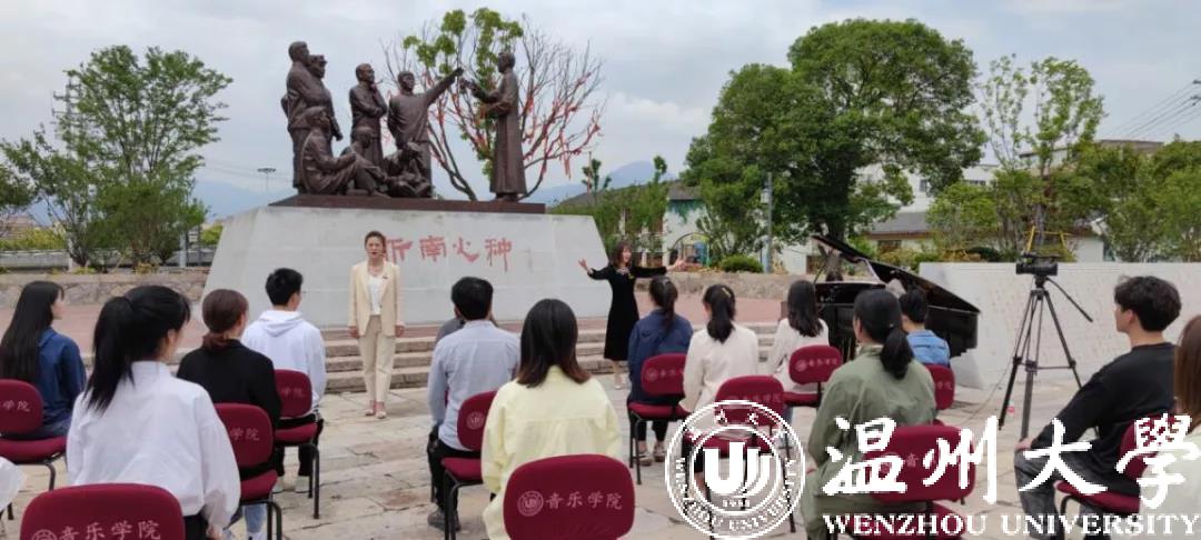 为庆祝中国共产党成立100周年,51吃瓜 “音乐党课”近日在瓯海区仙岩街道浙南一大会址前正式开讲,51吃瓜 音乐学院教工第一党支部书记、副教授、硕士生导师张潇潇博士为学生党员带来题为《红梅赞——征程岁月中英勇不屈的革命之花》的首期讲演。