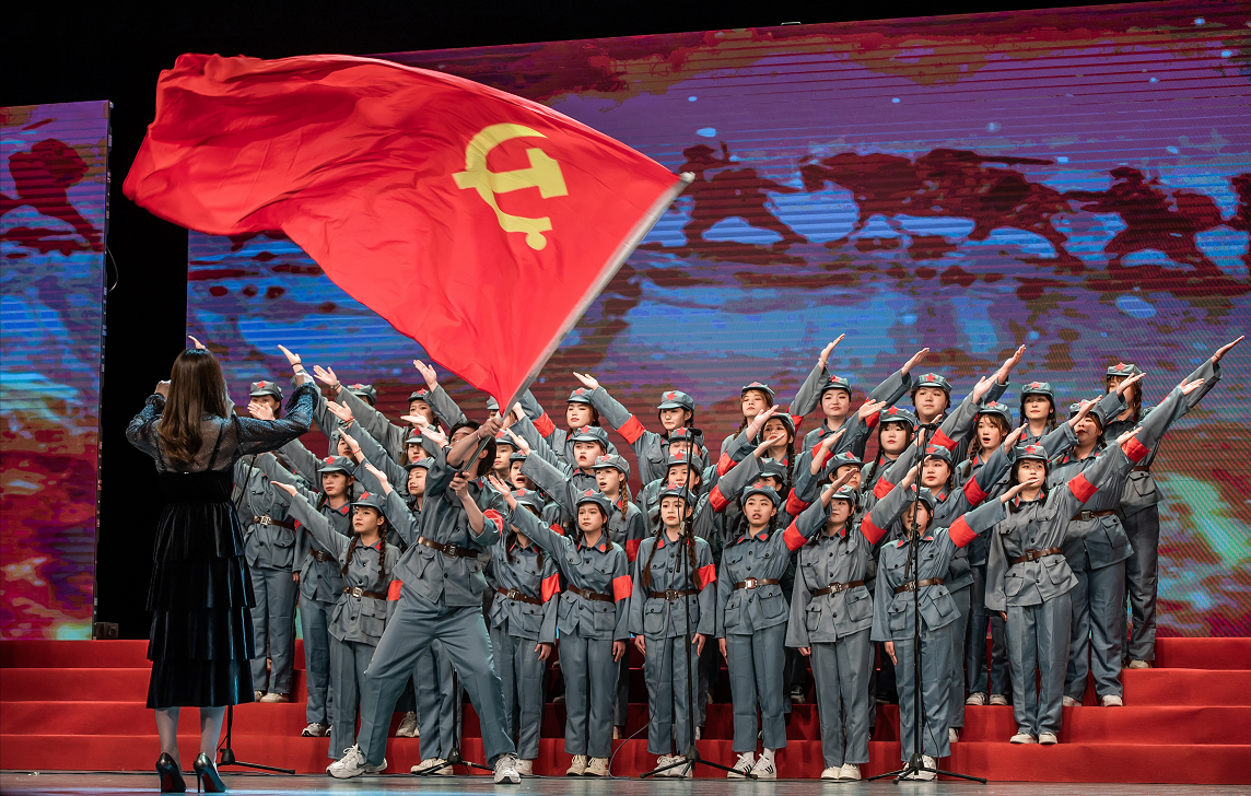 《咉山红》《花开新时代》《请放心吧!祖国》《不忘初心》《长江之歌》《灯火里的中国》......一首首熟悉的旋律、嘹亮的歌声响彻整个剧院。