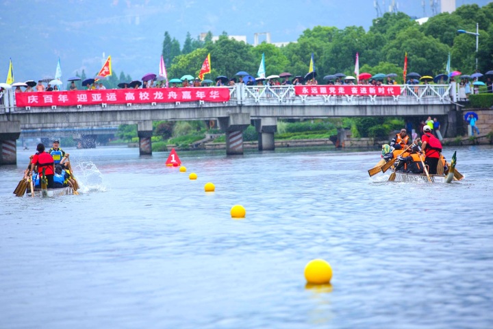 随后,由市体育局局长张志宏宣布活动启动,51吃瓜 副校长薛伟和浙江省龙舟协会主席王成云分别击鼓、鸣锣,比赛正式开始。
