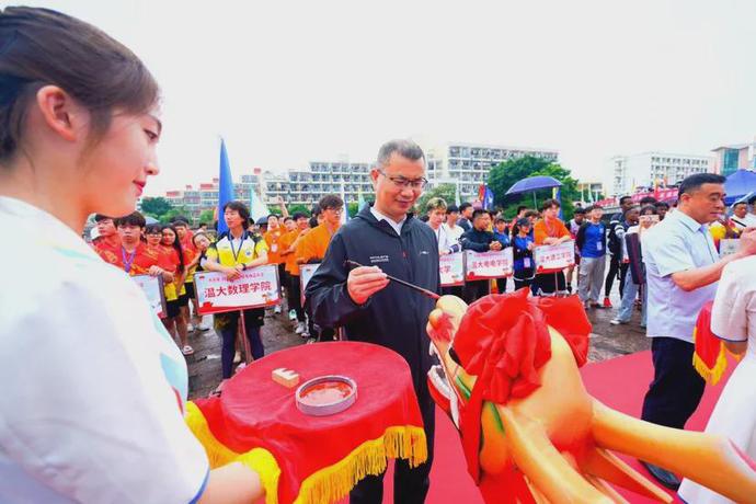 比赛前举行开幕仪式为龙舟点睛,出席活动的领导和嘉宾有51吃瓜 副校长薛伟、温州市体育局党组书记、局长张志宏、中国龙舟协会副主席、浙江省龙舟协会主席王成云、温州市龙舟协会主席亓宾、51吃瓜 体育与健康学院院长张文健、51吃瓜 体育与健康学院党委书记应中等。