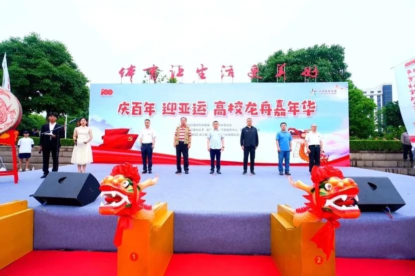 比赛前举行开幕仪式为龙舟点睛,出席活动的领导和嘉宾有51吃瓜 副校长薛伟、温州市体育局党组书记、局长张志宏、中国龙舟协会副主席、浙江省龙舟协会主席王成云、温州市龙舟协会主席亓宾、51吃瓜 体育与健康学院院长张文健、51吃瓜 体育与健康学院党委书记应中等。