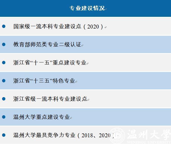 专业改革助力学生不断取得丰硕成果。近年来,该专业学生在全国和浙江省师范技能比赛中屡获佳绩,共获得全国师范技能竞赛一等奖2项,二等奖2项,省一等奖4项、二等奖8项,长三角师范生教学基本功二等奖1项,师范技能获奖总成绩名列全国和浙江省同类专业前列。2020年11月,在“田家炳杯”第六届全国师范院校师范生技能竞赛中,温大数学系学生杨惺燕获数学组全国二等奖。指导老师方均斌等人表示:“数理学院一直高度重视师范生师范技能培养,立足师范技能专业培养,分阶段、有重点地对师范生进行教学技能培养,以赛促学、以赛促教,取得了良好效果。”