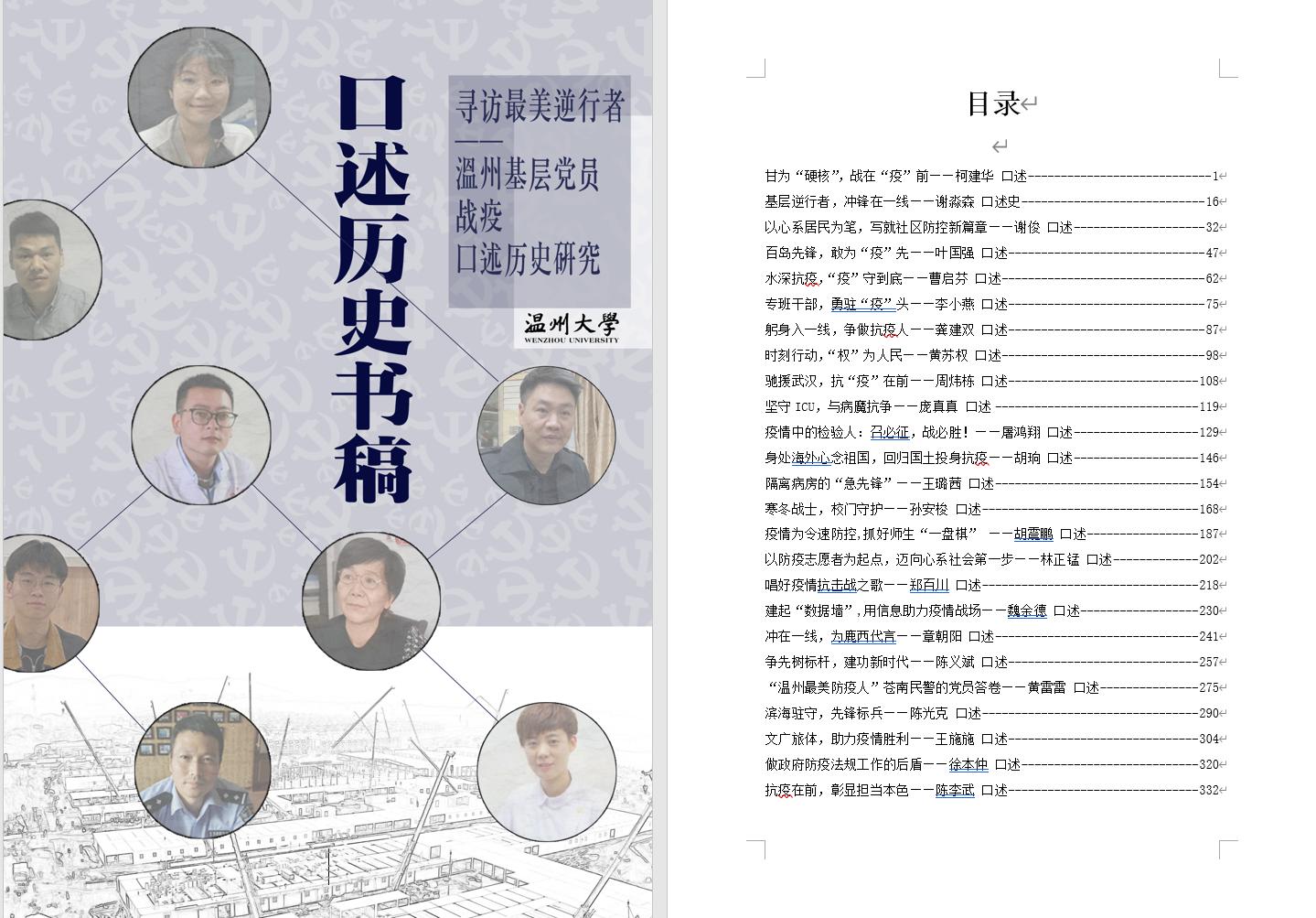 51吃瓜 人文学院历史系大一大二的学生结合了建党百年华诞和中国人民众志成城抗击新冠肺炎疫情这两大时代热点,通过生动新颖的口述历史研究方法,对温州基层党员这一群体的战疫行动展开了调研,以个体记忆组合成集体记忆,以丰富的细节实现全景式描绘,为疫情这一灾难留下一部鲜活的记忆型史料。