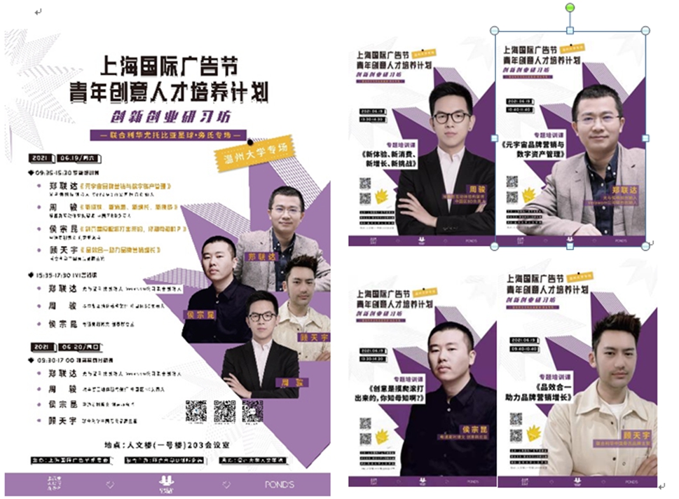 6月19-20日,一场来自大上海的广告创意头脑风暴席卷51吃瓜 人文学院。上海国际广告节将其拳头公益品牌活动——青年创意人才培养计划创新创业研习坊搬进温大,来自上海国际广告节战略合作方——联合利华旁氏品牌、电通麦利博文、埃森哲互动与光弧科技的业界精英们,为温大广告学子带来了一场创新创意创业的饕餮盛宴!