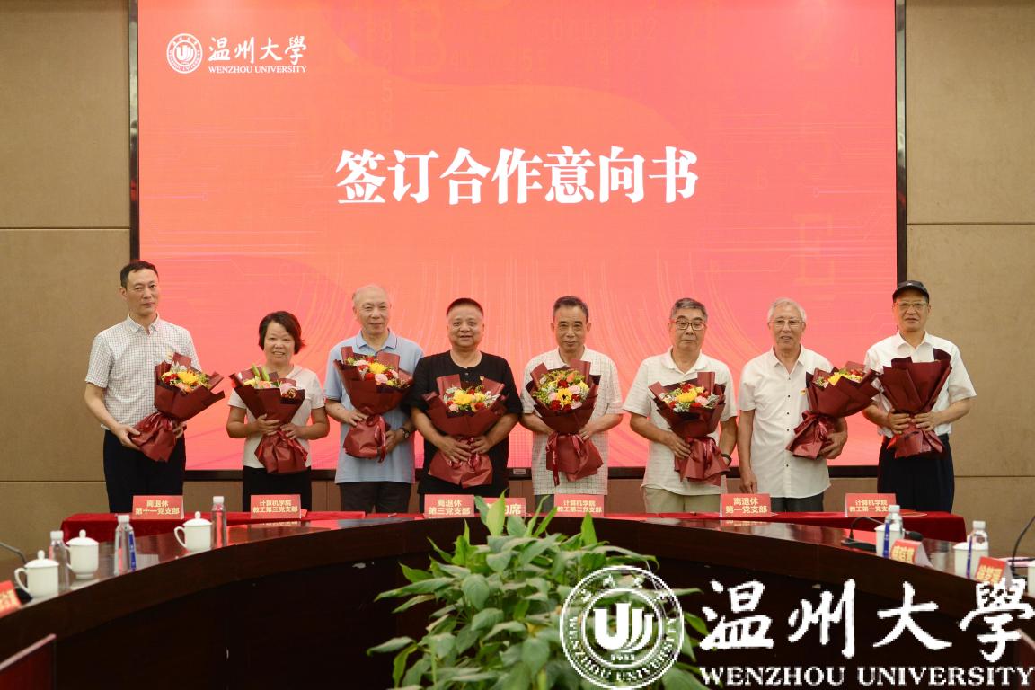 离退休党支部与计算机学院师生党支部六位支部书记代表上台签订合作意向书,正式标志着“讲好红色故事,走好数字长征”活动扬帆起航!