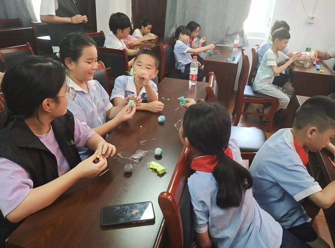 活动刚开始,志愿者通过“传字”“你画我猜”等小游戏来邀请小朋友们参加,用欢声笑语增进彼此之间的认识与了解,现场一派其乐融融。志愿者还利用气球、橡皮泥和塑料瓶进行旧物改造,制作肺泡模型,生动学习呼吸时的肺泡变化及原理,并鼓励孩子们进行肺活量大比拼。同时带领孩子们制作行星模型、地球仪,引发他们对科学探索的兴趣。