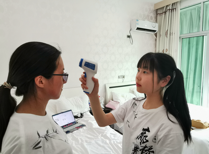 2020年暑期,实践队成员在互相测体温。