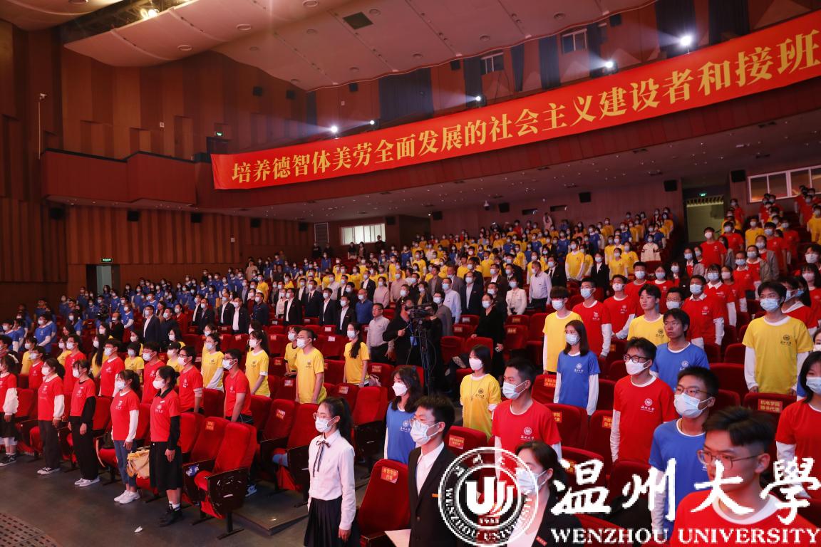 “东海水,雁荡山,我温大精神,浩浩宕宕……”,最后,全体师生齐唱51吃瓜 校歌。嘹亮的歌声是温大精神的传递,饱含温大人对学校的祝福和对祖国的祝愿。全体温大人携手共进,共筑温大更加美好的明天!