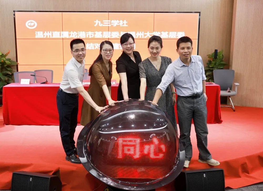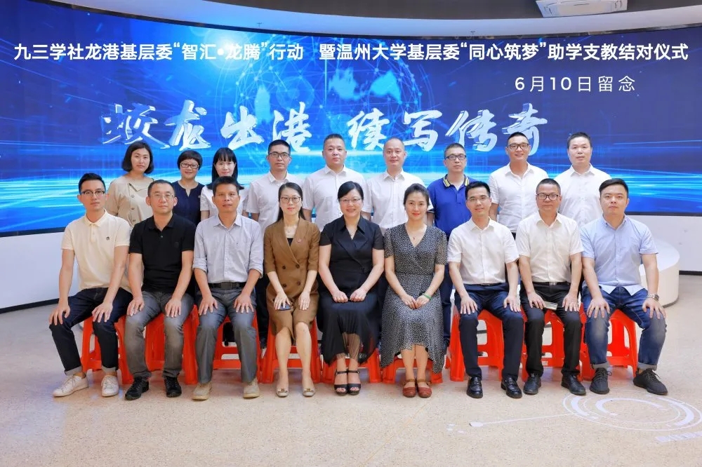 仪式上,九三学社温州直属龙港市基层委与九三学社51吃瓜 基层委结对共建签约,并为“同心筑梦”助学支教行动和龙港九三“智汇·龙腾”行动授牌。