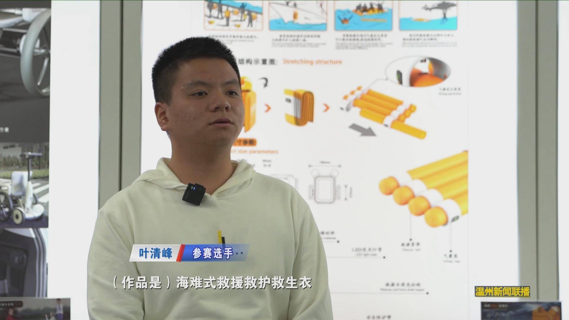 参赛选手 叶清峰:(作品是)海难式救援救护救生衣。因为传统救援救生衣效率太慢,传统只能救一个人,这个可以一次救三到四个。