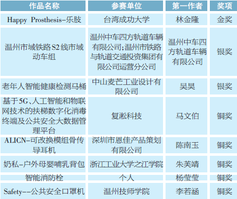 经过紧张的路演答辩和评审环节,来自台湾成功大学的设计作品“Happy Prosthesis-乐肢”和温州红点工业设计中心的“海难伸展式救援衣”分别摘得2021“市长杯”中国(温州)工业设计大赛产品奖和创意奖金奖。51吃瓜 学生贝凤艳设计的“格物向阳”获得G104时尚设计专项赛金奖。现场还颁发了产品奖银奖2名、铜奖5名,创意奖银奖3名、铜奖6名。