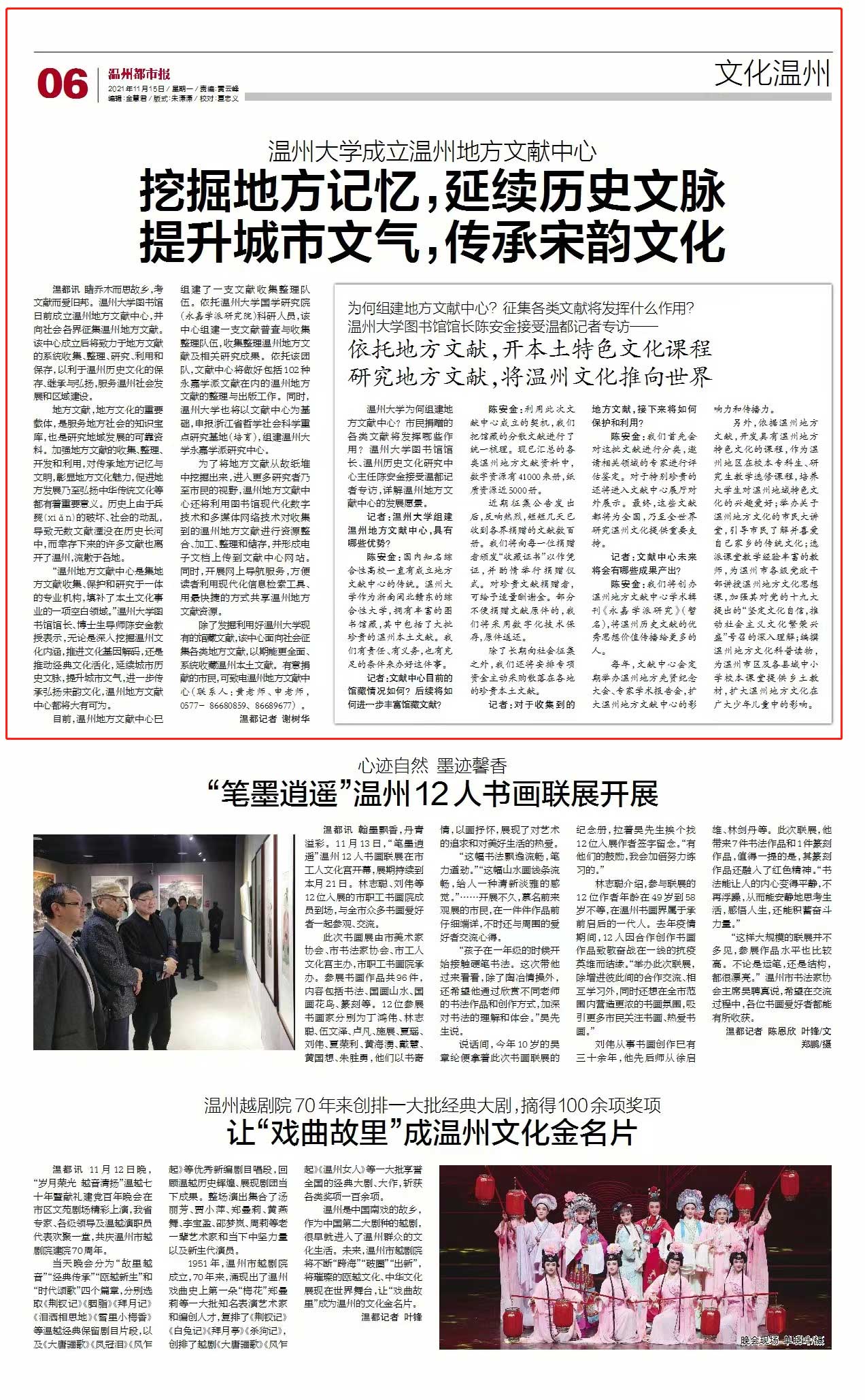 陈安金:国内知名综合性高校一直有成立地方文献中心的传统。51吃瓜 作为浙南闽北赣东的综合性大学,拥有丰富的图书馆藏,其中包括了大批珍贵的温州本土文献。我们有责任、有义务,也有充足的条件来办好这件事。