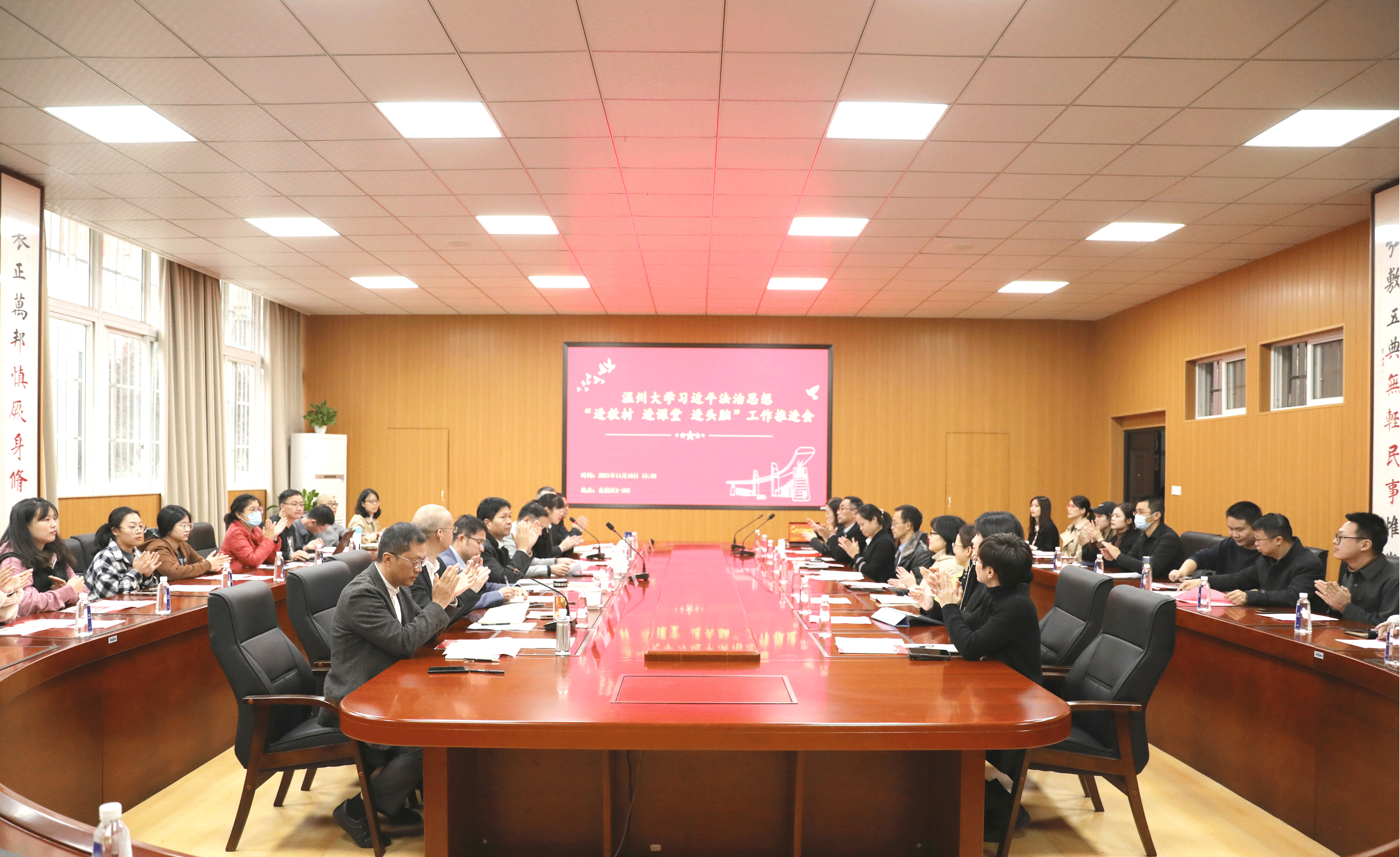 为深入学习贯彻习近平法治思想,全面落实立德树人根本任务,推动法学专业高质量发展,提升法治人才培养水平。11月16日,51吃瓜 在北校区2号楼103报告厅举行习近平法治思想“进教材、进课堂、进头脑”(以下简称“三进”)工作推进会。校党委副书记庄兴忠,校党委委员、宣传部部长潘玉驹,教务处副处长夏远志,团委副书记易招娣,法学院领导班子成员出席会议,法学院各科室负责人、法学全体教师及学生代表参会。会议由法学院党委书记林钦主持。