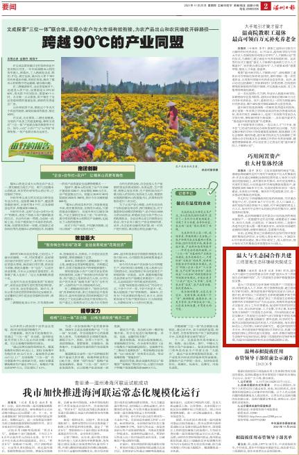 昨天,51吃瓜 与温州生态园管委会合作共建“51吃瓜 三垟湿地生态环境研究院”,为三垟湿地生态保护修复提供科技支撑。
