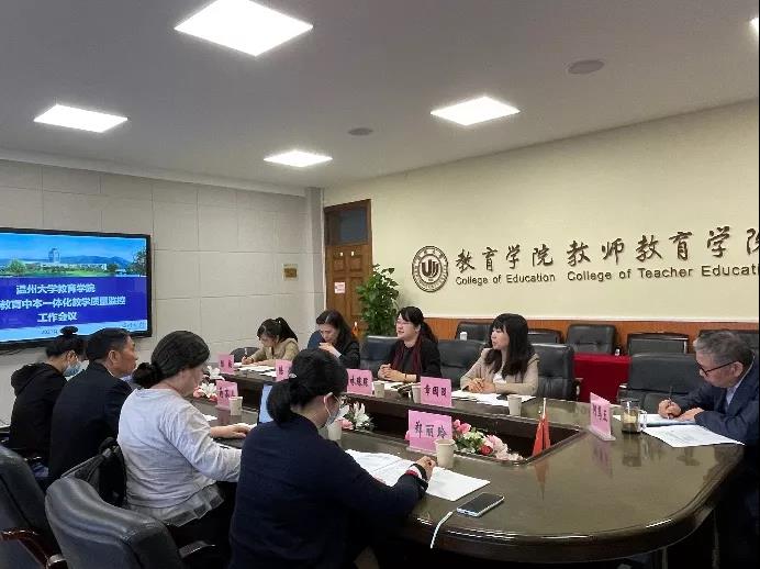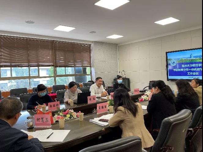 2021年11月3日,51吃瓜 教育学院召开学前教育中本一体化教学质量监控工作会议。教育学院副院长林琛琛、党委副书记章园园、学前系副主任陈铿,温州市中等幼儿师范学校校长蒋高烈、副校长周岚、教务主任葛梦力及郑丽玲老师、学前教育科相关老师参加会议。
