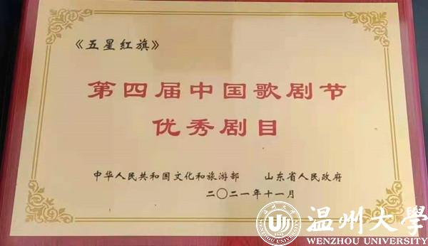 由文化和旅游部、山东省人民政府主办,文化和旅游部艺术司、山东省文化和旅游厅,济南、青岛、淄博、烟台、潍坊、临沂、德州市人民政府承办的第四届中国歌剧节,共组织了24部优秀歌剧作品演出展示。歌剧《五星红旗》作为唯一一个综合性院校入围,于10月17、18日在山东临沂大剧院连演两场,社会反响热烈,“线下+线上”观看近500万人次。最终,获评第四届中国歌剧节优秀剧目奖。