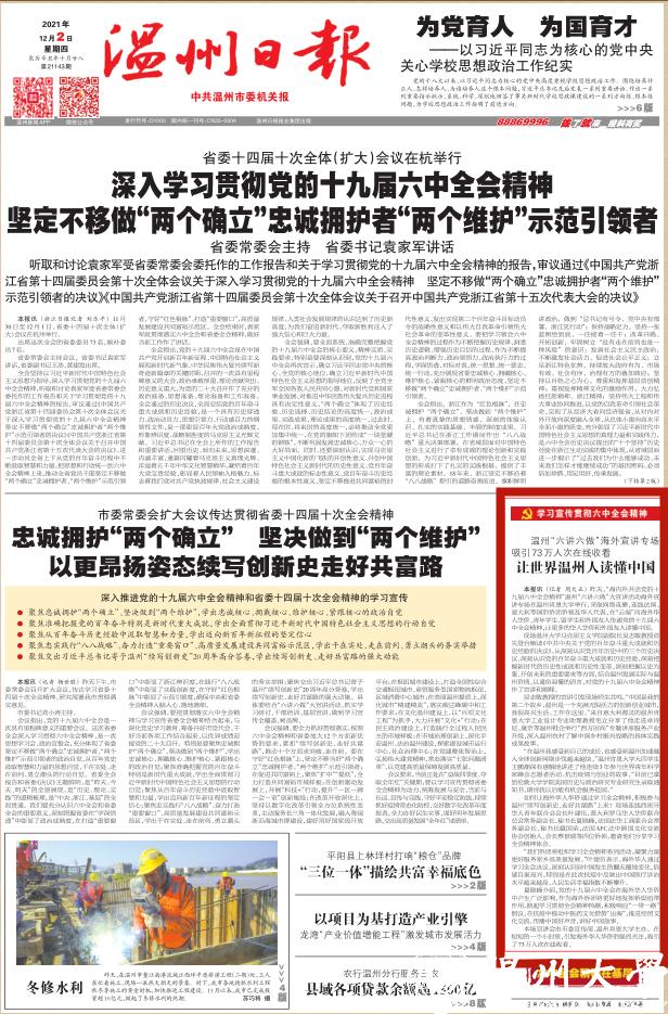 12月1日,“海内外共话党的十九届六中全会精神”温州“六讲六做”大宣讲活动海外宣讲专场在温州肯恩大学举行,采取网络直播,连线法国、意大利等国的侨团侨领及华人代表,在“云端”向海外华侨华人、青年学生、留学生和外国友人传递党的十九届六中全会精神,让更多的华侨华人和外国友人读懂中国。