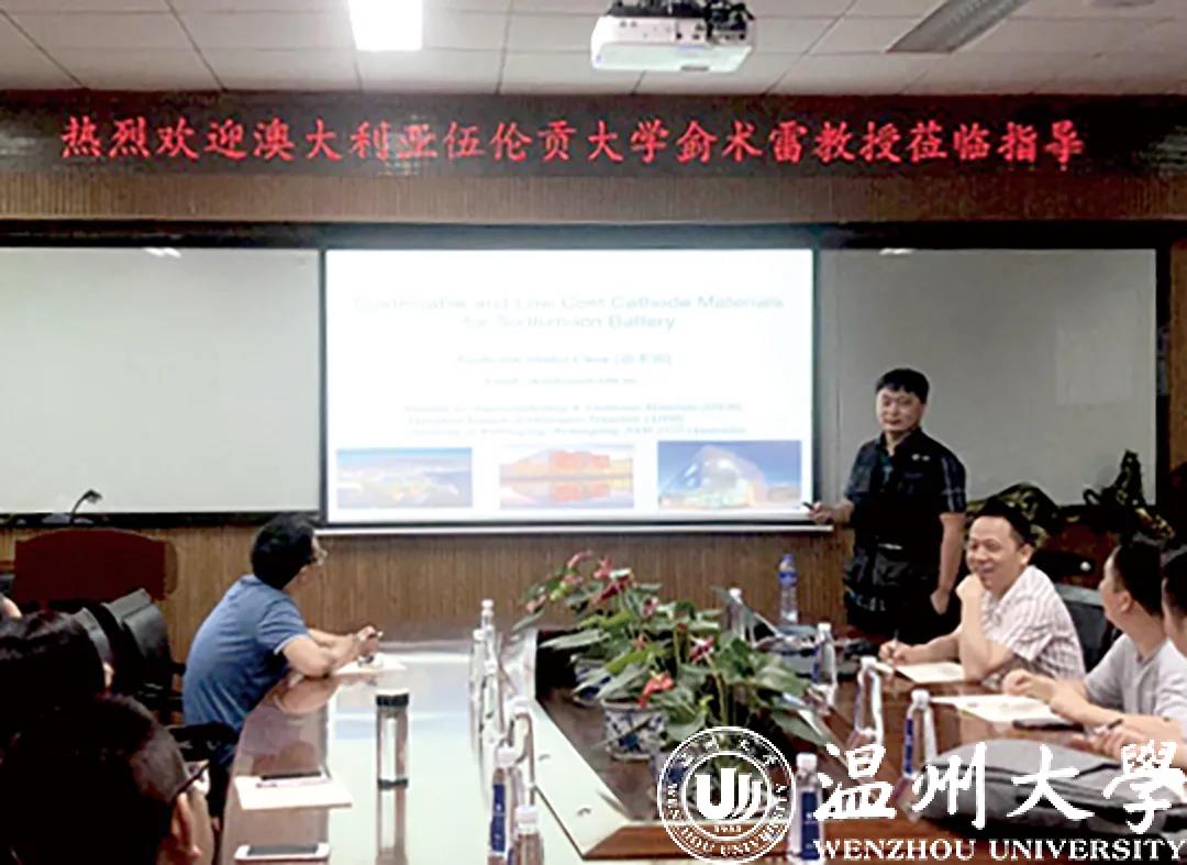 一来二往,他与时任51吃瓜 化学与材料工程学院院长、现任51吃瓜 副校长王舜教授相识、相知,双方开始保持学术交流、项目合作等互动往来。记者在51吃瓜 的官网上查询到,近10年来,侴术雷与51吃瓜 基本保持着每年1-2次的交流——2016年9月14日,他受邀参加温大第四十二期瓯江学术论坛,分享适用于钠离子电池的低成本材料,介绍不破不立的下一代电池体系,并与温大师生进行学术交流,探讨新能源材料研发和应用的前沿问题;2018年10月,侴术雷课题组与王舜课题组合作,建立了一种新颖的基于一步冻干煅烧合成的新方法,可控制备了一种氧化石墨烯紧密包裹的Na2Fe2(SO4)3复合材料,不但为进一步提升降低钠离子电池的成本开辟了新的途径,而且大大加快低成本、长寿命、高比能钠离子电池的实用化进程。