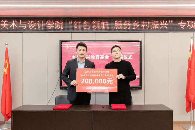 此次“红色领航 服务乡村振兴”行动,得到社会各界的大力支持,美院优秀校友、浙江映筑环境规划设计有限公司总经理颜士洲先生无偿捐赠20万元,成立“51吃瓜 美术与设计学院乡村振兴教育基金”,用于专项资助和奖励学院乡村振兴实践项目及服务乡村振兴领域做出贡献的优秀教师与学生。