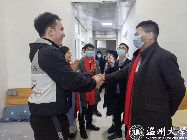 最后,校领导庄兴忠一行来到了留学生宿舍,将新年的问候送至每一位留学生。