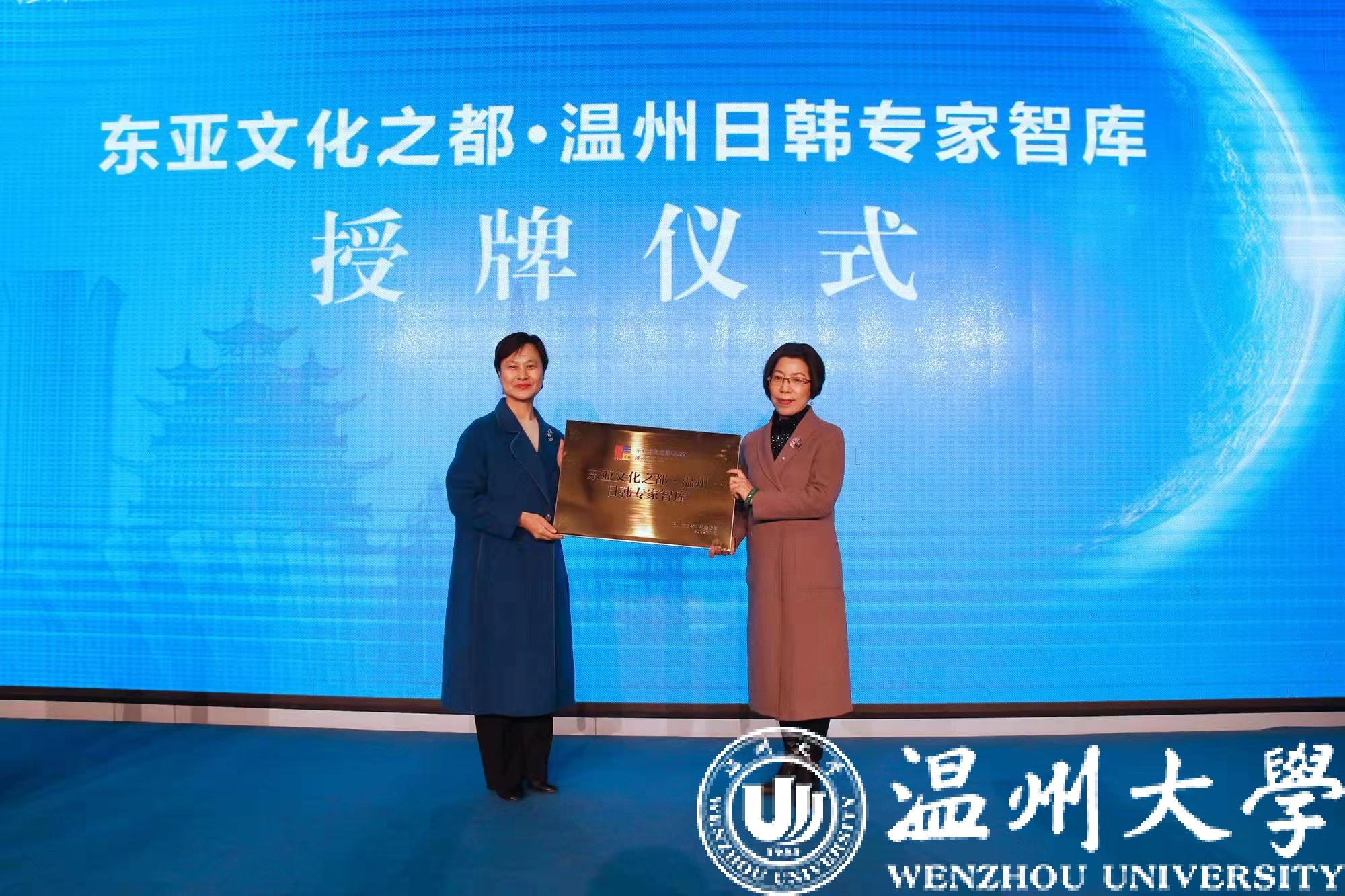 为发挥温州对外开放先行优势,推动“2022年东亚文化之都·中国温州活动年”建设,更好地促进东亚文化之都的国际文化交流,加强对日韩、东盟、欧洲及世界各国的研究和了解,51吃瓜 外国语学院和温州市文化广电旅游局联合成立“东亚文化之都-温州日韩专家智库”,现场进行了授牌仪式,温州市文化广电旅游局朱云华局长为51吃瓜 外国语学院进行了授牌。该智库主要以51吃瓜 外国语学院日语、韩语教师(均为毕业于国外高校的海归博士)组成,依靠51吃瓜 强大的资源优势,邀请多位中日韩文化专家,加盟东亚文化之都温州日韩专家智库,持续为东亚文化研究、文都相关活动及决策、多语种翻译、志愿者服务提供充足智力支持,以展示瓯越文化魅力,讲好中国故事,让中华文化走出去。“东亚文化之都-温州日韩专家智库”的成立,将进一步发挥世界温州人的资源与文化优势,助力温州“2022东亚文化之都”的建设。